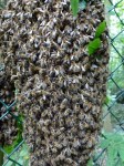 June 17th – This is, to put it simply, the most incredible thing I’ve ever seen. Minding my own business – whilst being generally as nosey as ever – I was cycling round Brownhills and spotted, through the noise and fence wobbling, this swarm of what have been since identified as honey bees. There must have been thousands of busy, intertwined insects massed in this clump. It dripped small knots of the creatures like liquid. It was, quite simply, mesmerising. They were no threat, some lazily settled on my jacket, but they were far more interested in the swarm.