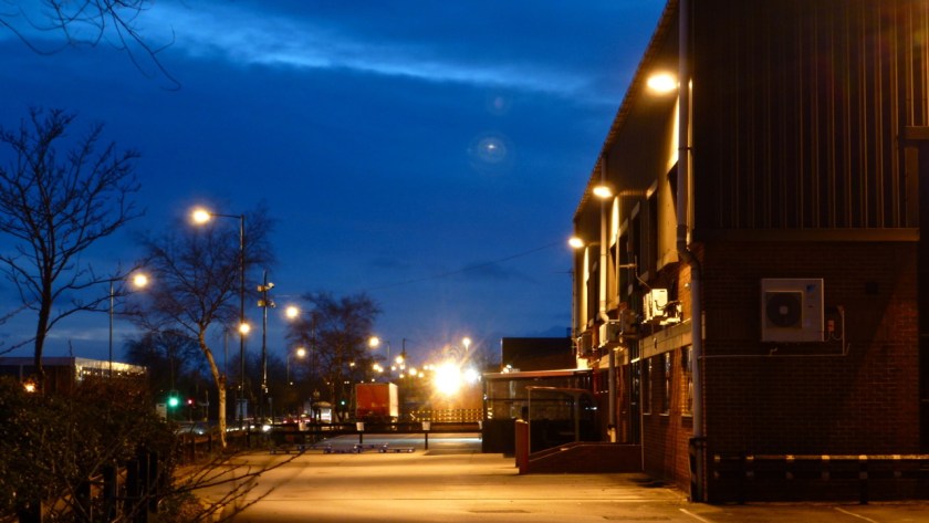 January 22nd – Tesco may not care much for Brownhills, but it has us in a stranglehold. The same company that operate our scruffy, down at heel supermarket are also one of the town’s biggest employers. Tesco own the One Stop group, operators of small community stores, which they bought up from T&S Stores a decade ago. Large numbers of folk are employed at the warehouse here, and there’s a constant flow of traffic and wagons into and out of the site. Tonight, it seemed quiet, but I could hear engines revving somewhere in the distance.