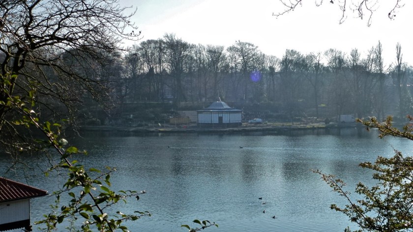 Today, for some reason, I chose not to take my usual route through The Butts and headed down to the Arboretum Junction. As I cycled past, I noticed the sunlight and haze over the Arboretum lake and decided to take a few pictures. Sadly, they all suffered from lens flare, but the view was gorgeous. Good to see the refurbishment coming on so well. The bandstand seems to be wonderfully restored.