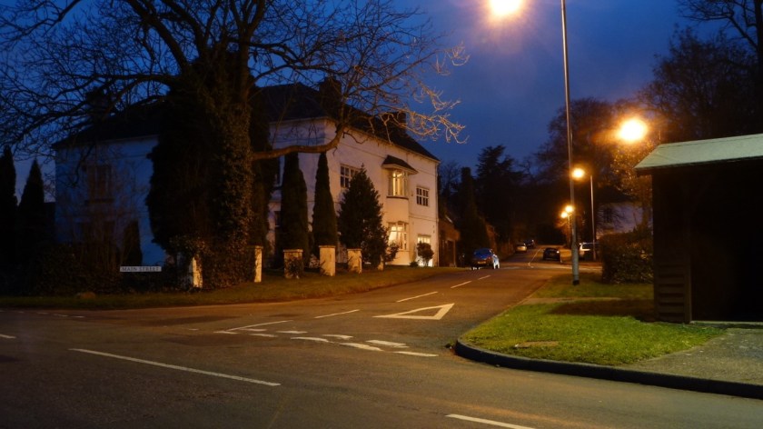 February 17th – Meanwhile, down in Stonnall, the village was as lovely as ever at night. By day, it’s plain, very modern-estate like, and somewhat redolent of Metroland; the village history utterly swamped by modern housing and unsympathetic pattern development, cashing in on the semi-rural cachet… By night, the character of the physical geography of the village comes out, and complex, historic buildings like the Manor House show their true imperiousness.
