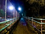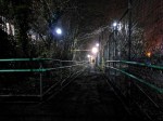 January 10th – I got the train back to Blake Street – I’m not really sure why. The disabled ramps there fascinate me – rather than being assembled, manufactured things, as the station is built on a hill, they’re just footpaths that meet the southerly ends of the platform. They’re at a fair incline, and have several dog leg bends in them. Shrouded by tress and shrubs, they are emerald green arcades on summer days, but dark, ethereal ginnels at night. I find the harsh lights, fencing and shadows fascinating.