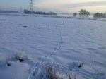 January 22nd – One of the more revealing things about snowy weather is that you can see the trails of your local wildlife. On a gorgeously sunny, but very, very cold morning commute, I stopped at Mill Green to take pictures, and noticed two convergent trails of animal footprints. Clearly a fox, or foxes, there was evidently something interesting near the fence, judging by the trail.
