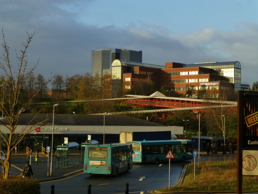 February 4th – At the other end of the journey, an hour and a half later, I noticed the hazy sun was out, and in it’s own way, Telford looked quite impressive. I’m not fond of the mirror-glass architecture thing myself, but it does look quite monolithic here. The station itself – recently refurbished – looked OK too, although it seems to be just a bit of a superficial tart-up.
