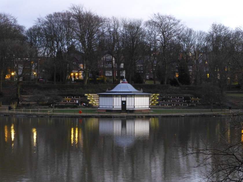 February 14th – I came past the Arboretum at twilight. I was hoping the park would still be open, but it still shut a 5pm, although if you look closely at this shot there’s a couple of people in there. I had to content myself with a shot of the refurbished bandstand from the Lichfield Road instead.