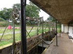 September 8th – I headed back to explore more of Hopwas Hays Wood, this time approaching from the bridleway across the old ranges. I stopped to check out the biggest one, which now seems derelict (although may not be). The dug-out and hand mechanisms for target raising are still there, although the mechanics are inhibited with catenary clamps. On the concrete slab roof of the dugout, locked hatches would seem to be covering an automatic target mechanism. It’s certainly fairly complicated, as armoured cables with lots of cores are cut off in the dugout, which seemed to connect them to the plant room at the end. A discarded optic sensor lies on top, together with some kind of equipment ID tags.