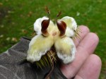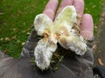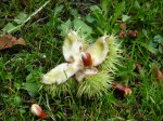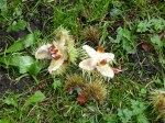 October 4th – Alongside several horse chestnut trees in Festival Gardens, Lichfield, there are also some variety of sweet chestnuts. These prickly customers are a bit of a mystery to me, as they’re clearly the same fruit as the ones you’d buy at the greengrocer, but the ones I see whist out and about are rarely of an edible size. The trees are gorgeous, with leathery, glossy dark green leaves, and the chestnuts are held in a very prickly husk. When they open star-shaped and fall, inside the husk is downy and soft. These fruits are almost alien, and the perfection of the package is a wonder to behold.