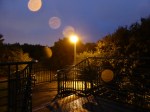 October 12th – It’s quite hard to take photos on such a rainy day. You find all the good pictures are facing the rainfall, and because the light is poor, you need long exposures, usually resulting in the lens gathering raindrops. I stopped on the Pier Street Bridge to check out the golden streetlight on the canal surface, and managed to keep the lens dry enough to capture the narrowboats in their moorings. Spinning round and interested in the combination of light, wet surface and steelwork, I didn’t realise I had gathered the raindrops. But they worked out quite well, really.