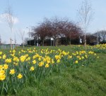 The daffodils that the Aldridge in Bloom people have planted in Aldridge look beautiful at the moment be they on the busy corner of Station Road and Walsall Road, on the edge of what was Pool Green or in a box in the shopping centre. The red currant and grape hyacinths grow wild by and through the fence to the railway embankment on Nursery Avenue, which also happens to be an excellent place to pick blackberries in the autumn.