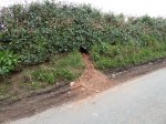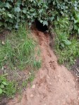 March 30th – I’m not going to say where this is, for fairly obvious reasons, but there’s only one animal in the UK that digs like that – and this one has been digging a real des-res. Freshly excavated damp sand and quite large stones spilled out onto the roadside, but no sign of the occupant.