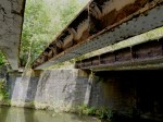 `Talking of bridges, between Moxley and Toll End, I spotted this one; the eagle eyed will note that this decaying, derelict railway crossing – The Hempole Bridge – is almost identical in construction to the railway bridge over the canal near the Pelsall Road in Brownhills, which is a listed structure, due to it’s rarity. Note the same blue Freakley Brothers bricks; the pattern in the cast plates, the pre-girder hot-rivet and cast truss metalwork.