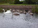 The Swan family were grazing by the embankment restoration near the Black Cock Bridge. The seven young I’ve followed since hatching are adult-sized now, and the first hints of adult, white plumage are beginning to show. I don’t know what the bank works have disturbed, but these graceful birds were very engaged with eating it!