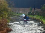 November 25th – Further on, near Bentley Bridge, a narrowboat passed me going a fair lick. Unusually, it was decorated in an eye-catching indian style, replete with Ganesha motif fretted into the hatch door. Equipped with a canoe, this looked like a home as well as a boat; it had that well loved but well used air that comes with such craft.
