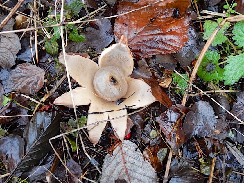 December 12th – A wet, horrible day, but a remarkable, surprising find – a rosy earthstar.