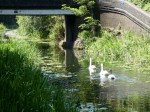 Near Bentley Bridge, just near the nest where they hatched their single cygnet, the swan family were moving purposefully towards Darlastoin.
