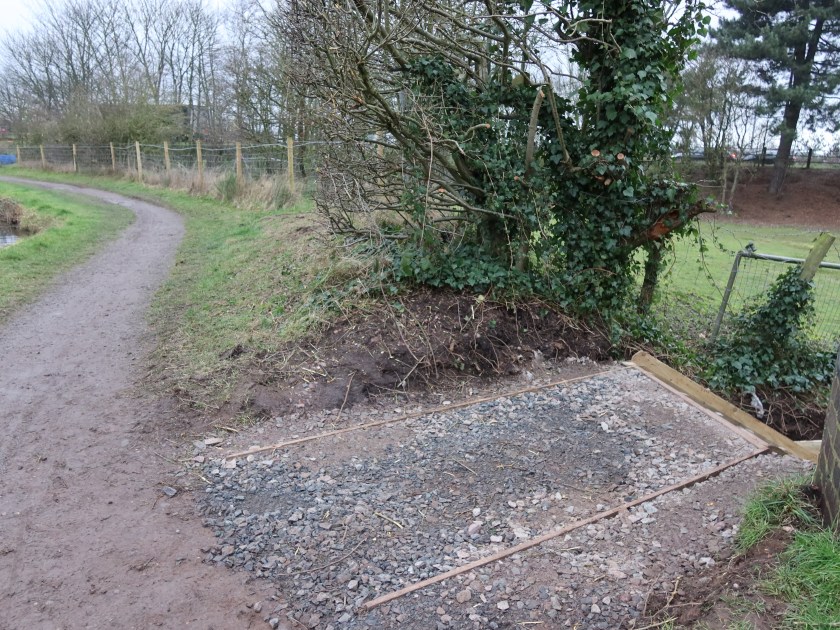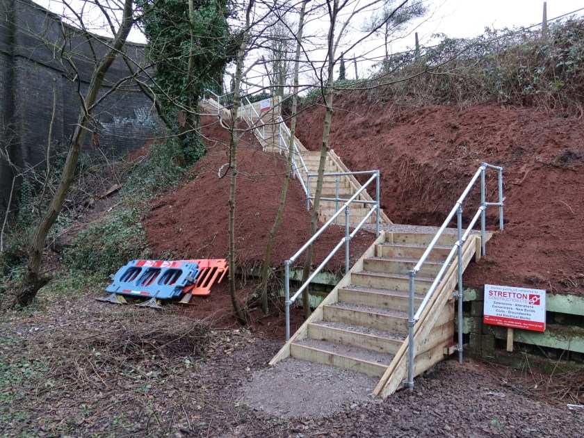 January 31st – Wearily plodding to Chasewater – not easy in the post-hospital condition in which I found myself – I stopped to note that the new steps between the McLean Way – the former rail line through Brownhills and the canal at the Newtown Viaduct were now complete, and had a lady feeling channel just like the ones at Bullows Road.