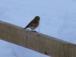 I slipped out mid afternoon. The main roads again, were clear, and some of the more minor ones like Coppice Lane were very clear, too, although standing water was everywhere. I spun around Brownhills, getting a feel for the evil east wind that was blowing powder-dry snow in clouds. At the old level crossing at the top, a lovely little robin caught my eye, flitting about amongst the laurels at the side of the road. As I passed the common, I noticed one of the best ice-castles I’ve ever seen, with it’s proud constructor playing nearby.