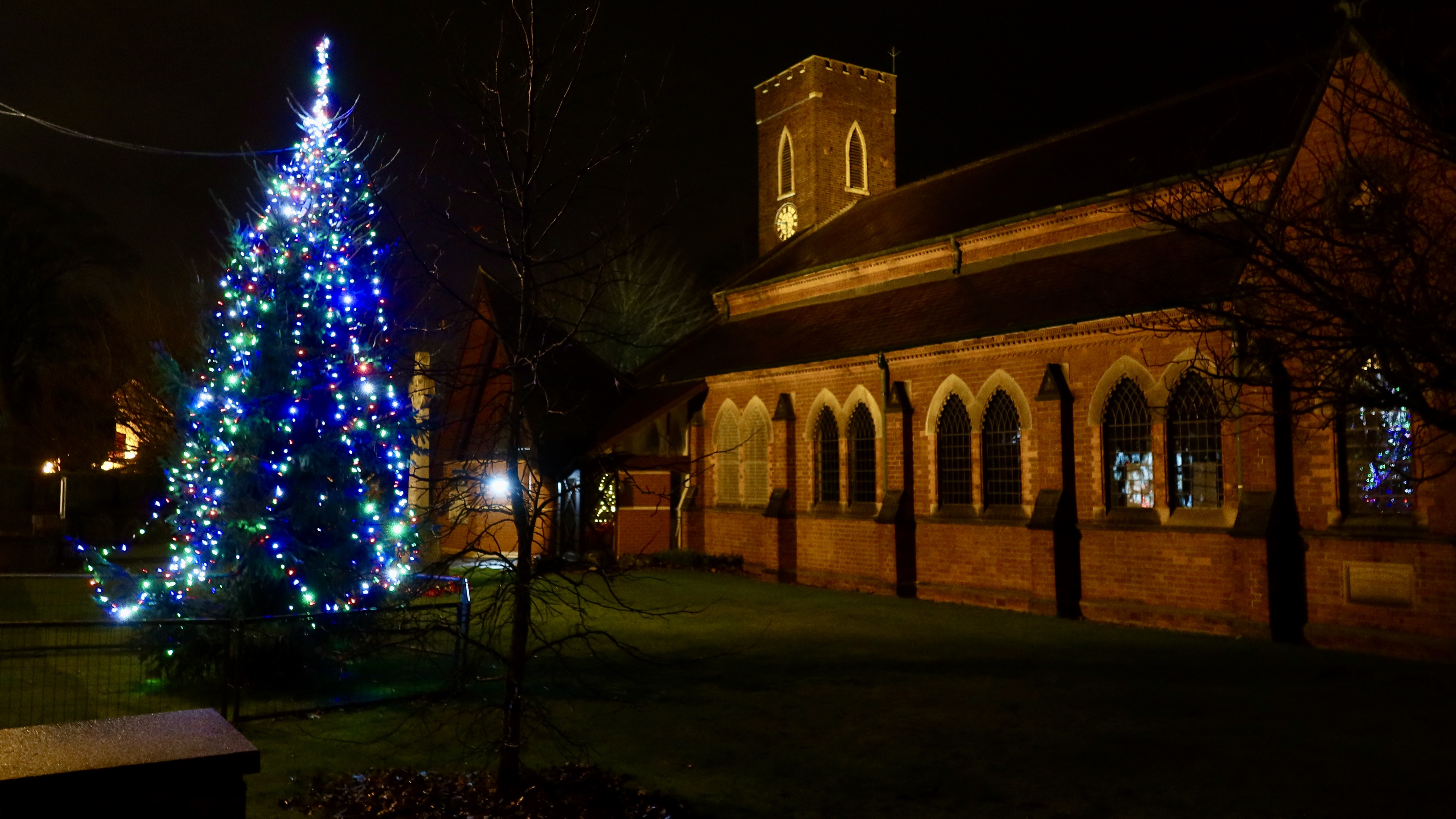 December 21st – A quick stretch up to Walsall Wood for some errands and to deliver cards. Just time for another shot of St. Johns, whose Christmas tree – donated by the local councillors every year – looks so gorgeous.
