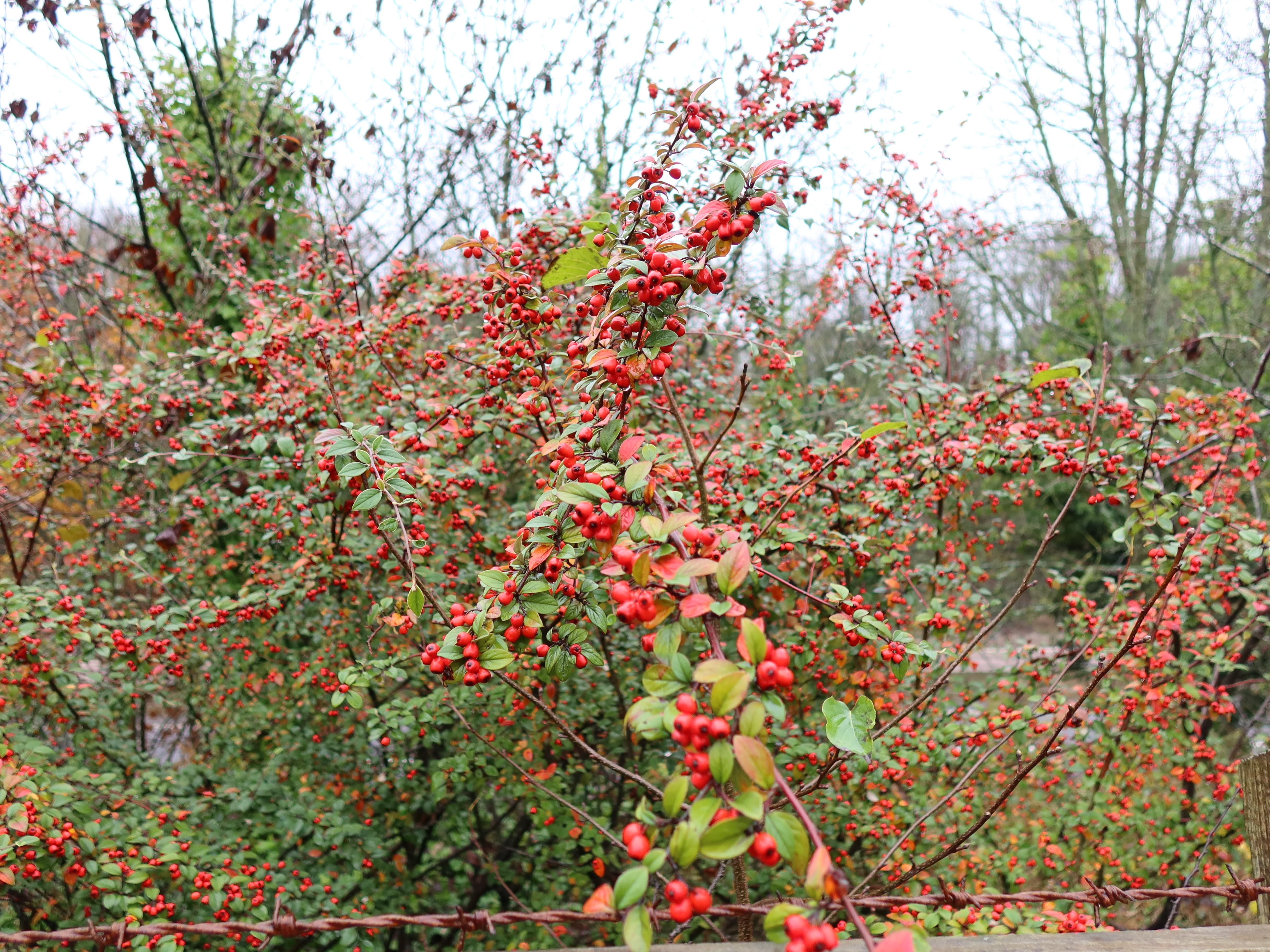 Cotoneaster are really appreciated by blackbirds who will defend a discovered bush for weeks if need be. The berries are bitter, but laden with sugar and a read aid to the birds over a cold winter.