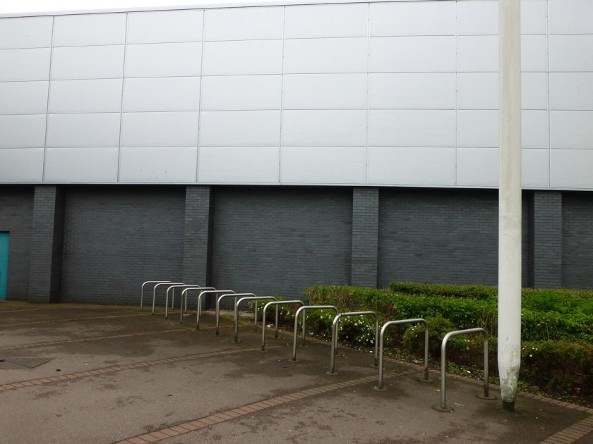 June 16th – First time I’d been to Walsall on a Saturday for over 18 months, and I quickly remembered why. It may have just been the rain, but the lack of anything decent in the town centre, the grinding misery of the shoppers, and the general air of shabbiness the place wears just ground the joy out of me. I walked up Chuch Hill, and then cycled to Caldmore to pick up my favourite sweets and savouries, then back to Crown Wharf and Maplin. Not finding what I was after, I went for a coffee in Starbucks, and locked my bike to the railings out front, as many others were doing. As I left the retail park, I noted with a wry smile that the cycle parking provided – a large quantity of Sheffield stands – was unused. Hidden away, with no CCTV cover, you’d be mad to lock your ride there. These town planning types just don’t get it, do they?