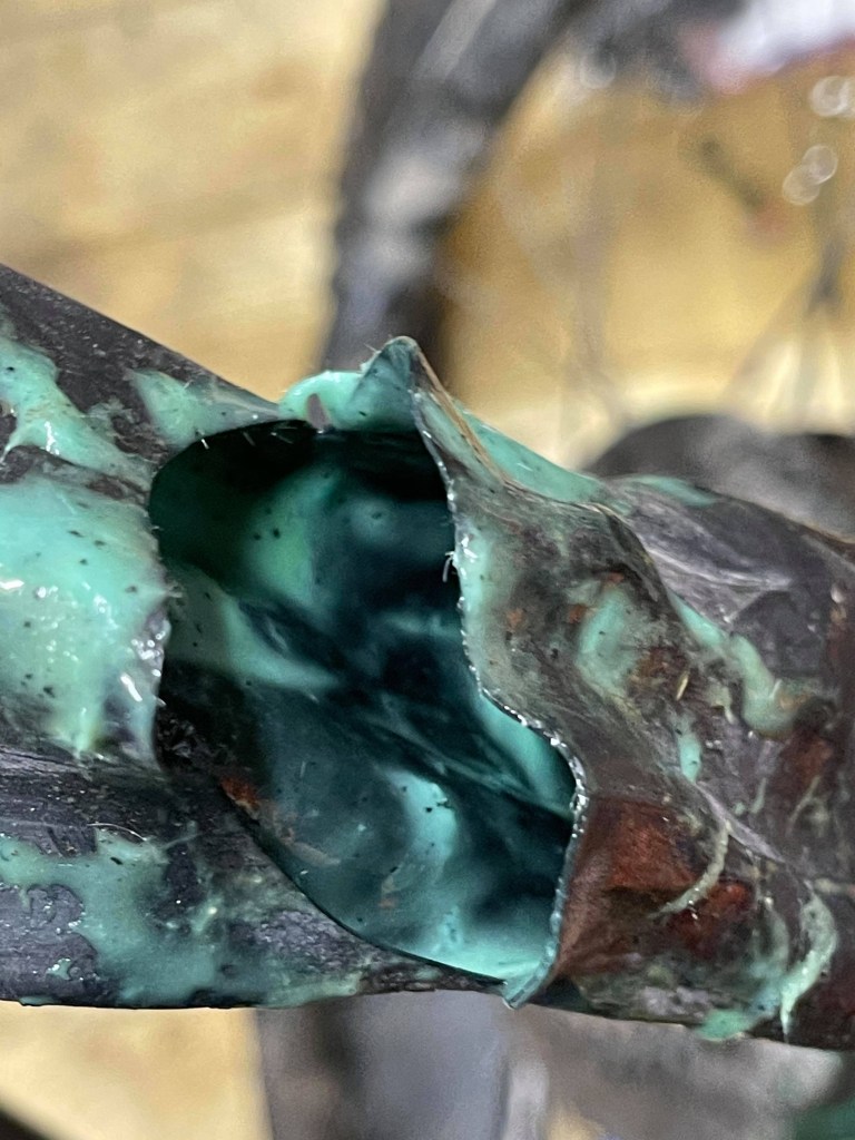 There was a loud bang, and a volcanic ejaculation of green sealant.