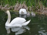May 4th – The swan family from the new pool in Clayhanger, whose four hatchlings I noted earlier in the week, have somehow moved the 30-odd meters to the canal, and were up near Walsall Wood Bridge, just near the High Street, when I spotted them yesterday evening. Clearly growing and bright as buttons, the little grey and white cygnets were clearly being taught to forage by mum and dad, who seemed to be finding clumps of vegetation for them to sort through, although their offspring didn’t seem too interested. Swans typically live on algae, reed grasses and small bugs and tadpoles, so learning to forage is critical.