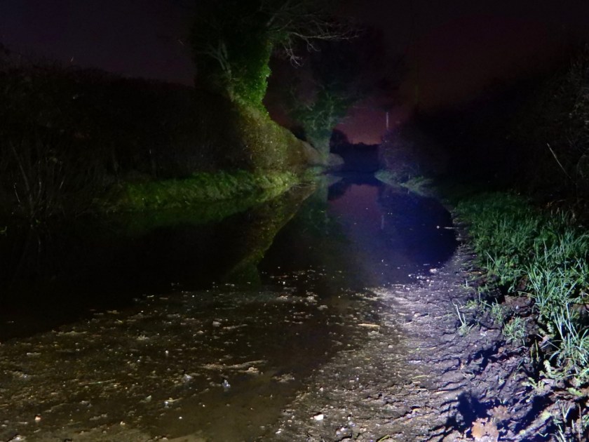 January 20th – I was home earlier, but didn’t escape the dark. It was light when I left though, which was something. On the way back I had to call in to Stonnall on an errand, and I came upon a hazard every bit as dangerous as the unexpected black ice that morning; in the blackness of the backlane, the road was flooded to some depth for the full width of the tarmac.