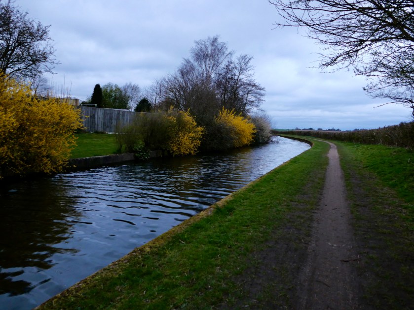 The only splash of colour in a grim day – The first of British Summer Time – was found in the forsythia growing by the canal at Catshill that I noticed on my return at dusk, at a pleasing 7:40pm.