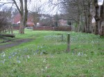 Despite the terrible light and encroaching dusk, I think it can be seen that the usual carpet of purple and white crocuses in the cemetery is just coming into flower.