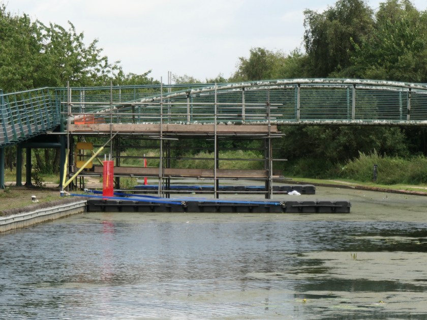 October 28th – Telford’s new footbridge linking town and railway station – built to replace an older one rendered unsuitable for wheelchair users – is still plagued with standing water, despite attempts to alleviate it by drilling holes in the bridge deck.