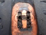 The intense concentration of force in one small component and two 5mm screws is so great that it wears quite quickly. Tonight, my cleats had developed such a sloppy fit, I couldn’t put up with them anymore. After 5,000 miles, it was time for a change.