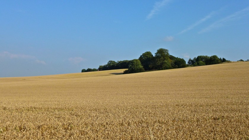 Crossing Harehurst Hill from Claypit Lane on the bridleway to the old Watling Street, when I looked south, all I could see before me was a healthy, lush crop of beans. Northwards, a similarly decent crop of wheat.