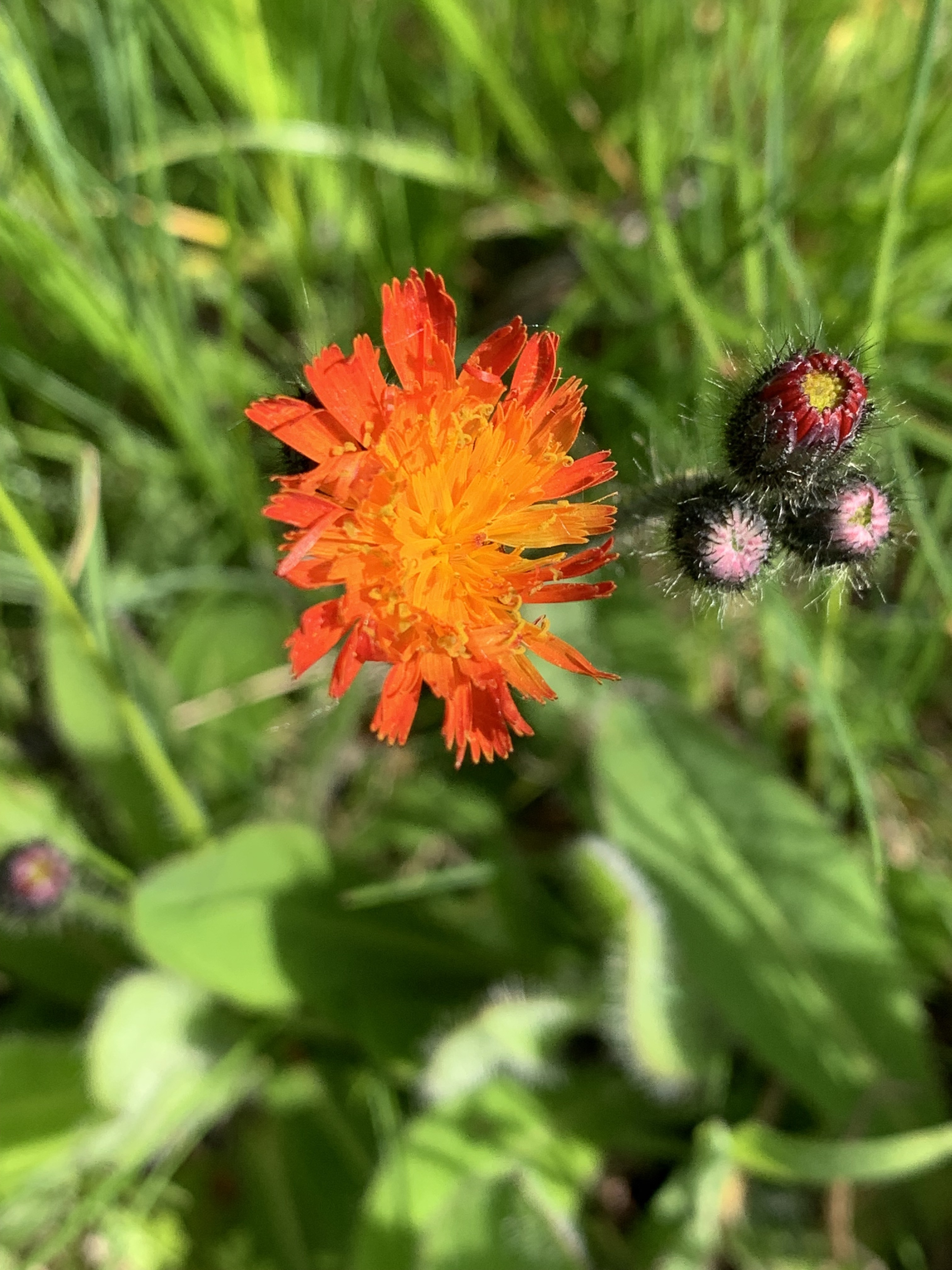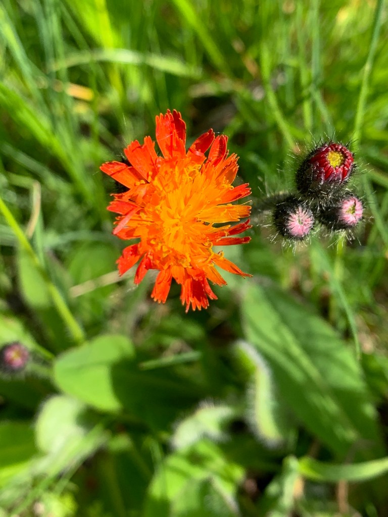 Adding to the bright yellows of spring, a flower at first glance often mistaken for dandelions. Hawkweed.