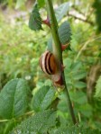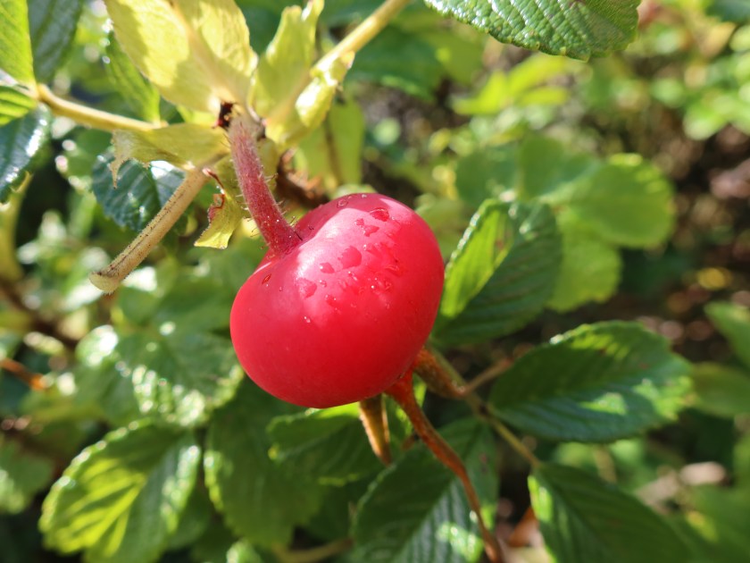 Today I found myself studying it again, at 8:45 on a misty, yet hazily sunny autumn morning. The fruiting has started in earnest. Haws, Hips, and catoniaster (the blackbirds go nuts for those bright orange berries) mingled with teasels, snails and cobwebs to make an autumnal tableaux that astounded and transfixed me.