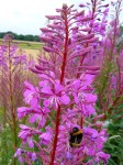 July 20th – The rosebay willow herb – old man’s beard – has been coming out for a couple of weeks now. This tall, viciously purple plant occupies urban waste grounds, rural set-asides, hedgerows and lay-bys, and fruits to a hairy, airborne seed that we all know. This fine summer flower- often dismissed as a mere weed – is a veritable bee magnet and I counted at least seven species on this small clump near Ive House Farm in Lower Stonnall. As fine a summer feature as you’re likely to find.
