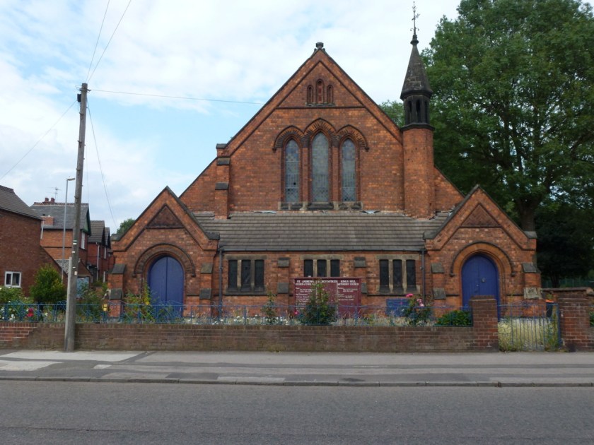 October 18th – I’ve been in Darlaston all this week, and Kings Hill continues to pique my interest. As well as some great faded architecture, this characterful post-industrial borderland between Walsall and Sandwell contains a really great park. Recently refurbished Kings Hill Park – which I erroneously referred to as King George Park in an earlier post for some reason – is hilly, wooded and beautiful. There’s a wonderful new sculpture, and the whole place is wearing autumn beautifully. Emerging into Franchise Street, I admired the view of St. Matthews, Walsall over the rooftops. There are some fantastic old houses here.