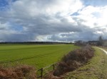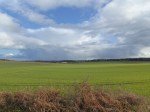 The slopes of Meerash to the old railway are bright green with fresh crop growth and are dusted with bright yellow. Clearly a flowering winter crop.