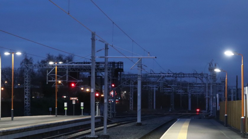 It was while downing a double espresso to pep me up for the push from Four Oaks that I took time admiring the night view of metalwork, lights and machinery from under the access bridge on platform eight.