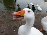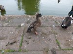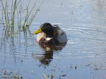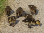 There’s a pond there, and on this hot afternoon, Mrs. Mallard, with what I assume must be a second clutch, was promenading in the sunshine. More indolent, but no less cute, were a pair of swan parents with six offspring.