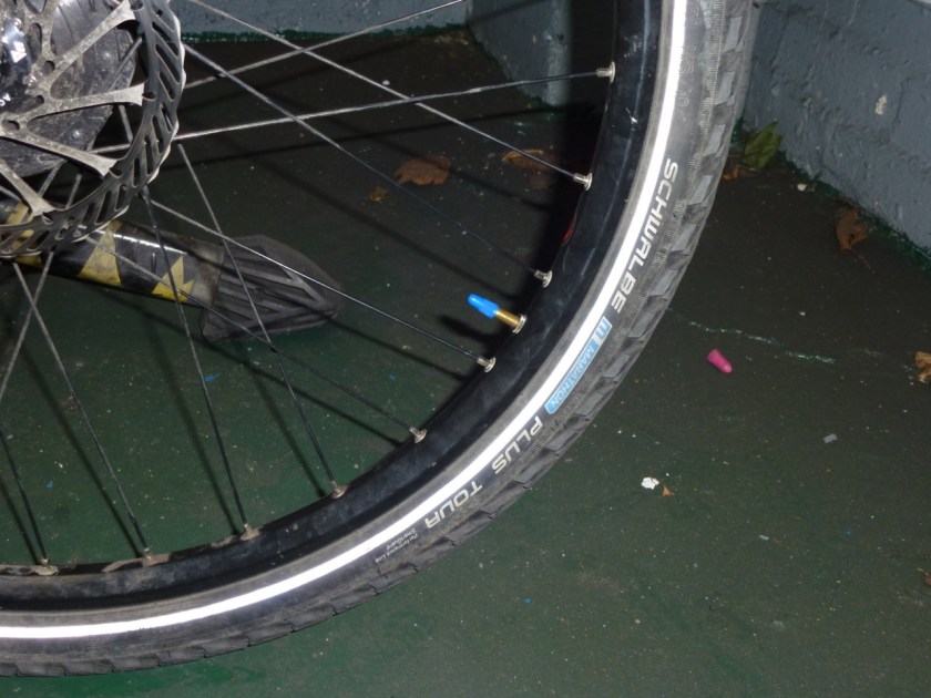 On my favourite steed, I have tyre clearance issues with the mudguards, so wanting to return to the softer, more forgiving ride of a 28mm tyre over the usual 25s, last September when tyre replacement was needed, I got a pair of Specialised Armadillo tyres I’d heard were very good – apparently nearly as resilient as Martathon Plus which I normally use, at a lower profile.