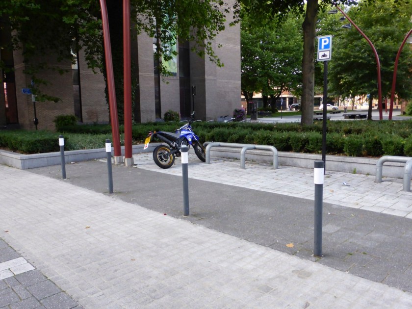 I’m assuming it’s electric, and it bears no registration (it occurs there could be a plate on the tailgate, which is down in the photos), although looking very moped-like with indicators and mirrors. It’s parked in a disabled bay, and from the design and rear door that doubles as a ramp, it’s clear that a normal wheelchair is propelled onto it, and the vehicle piloted using the moped-style handlebars without leaving the wheelchair.