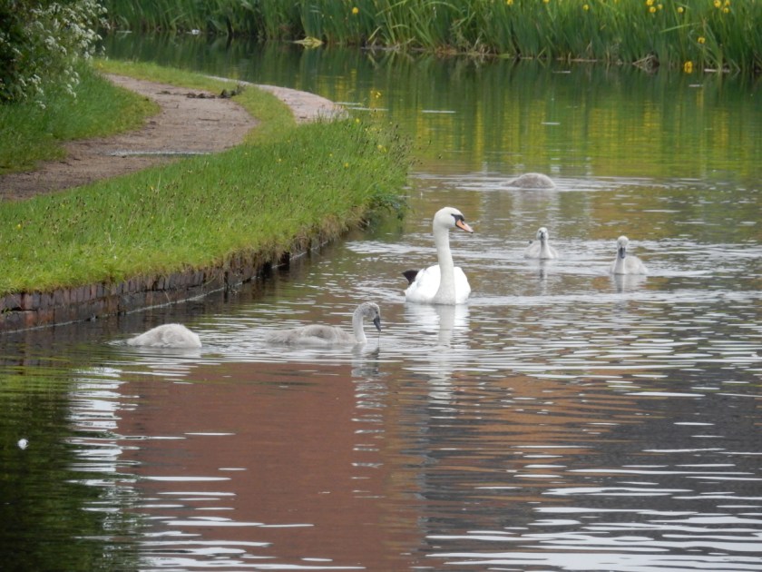 Swans are not bright birds. As I came home along the canal, I spotted this usually aggressive lone bird fast asleep, drifting on the water. It had floated into the bank around the overflow, at Clayhanger Bridge, and the thicket nearby is usually host to a den of Brer Fox.