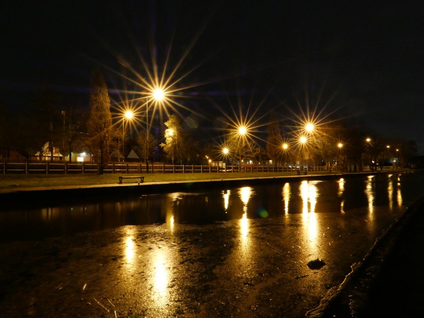 Here on the canal at Silver Street on my way home from work – it did pretty well. Except for the green lens flare in the lower right centre of the image.