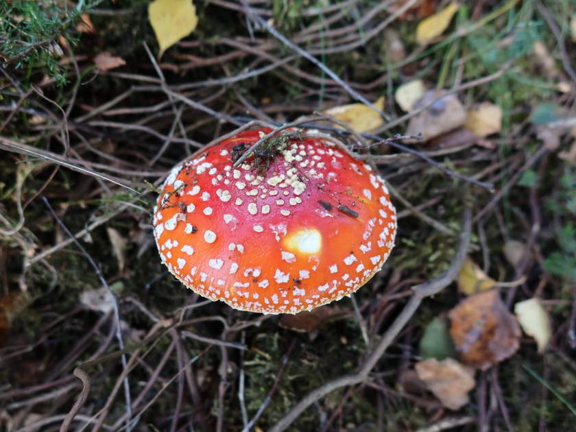 The red and orange spiny, furry growth on the rose stem that looks like a ball of thread? That’s a robins pincushion or Diplolepis rosea – a gall formed, like the oak galls by a wasp.