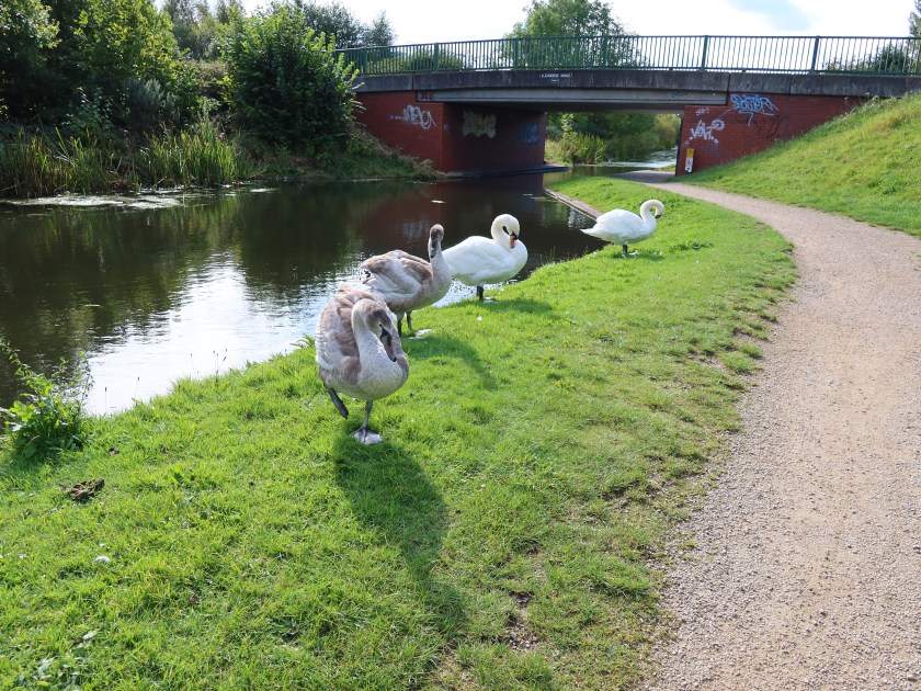 At Clayhanger Bridge I met the Watermead family, all now large birds, having a communal preen by the canalside. They tolerated me, and only went for my ankles a couple of times.