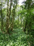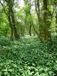 This small cluster of large houses is old, and there’s a brook flowing noisily alongside the tree-lined lane. In the margin between the two, a veritable forest of wild garlic, or ramsons.