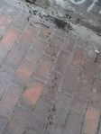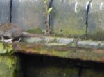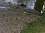 Today, I saw this large specimen by the bridge (Bottom left, top picture. Look carefully) – I startled it and it ran for the water and swam to safety. But note the line of wet paw prints, the line caused by a dragging, wet tail and the water from a shake dry.