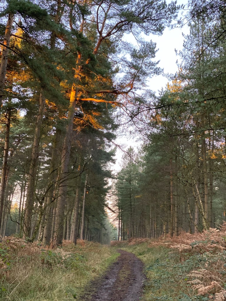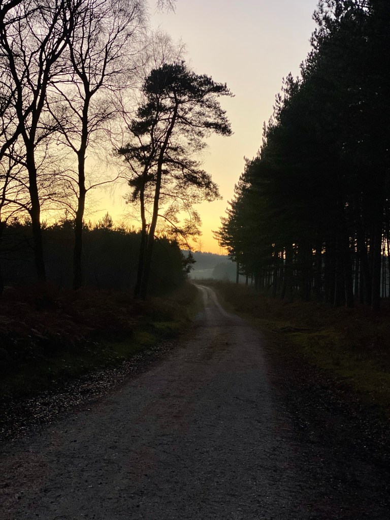 Up over Rainbow Hill to Moor’s Gorse, up through Slitting Mill and Birches Valley to Penkridge Bank – from there the Ranges, Wolseley Plain and Abraham’s Valley to Seven Springs. All in the most gorgeous sunset.