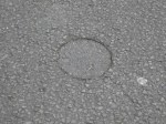 People who study the road surface (and there are a few of us, mainly on 2 wheels) may notice perfectly circular cutouts, punch-throughs or holes in the endless asphalt. Sometimes they’re filled with tar, or white lining paint. Often, they have the material that came out of them put back in like a tarmac divot. Sometimes, they open into potholes, particularly if badly sealed. But what are they?