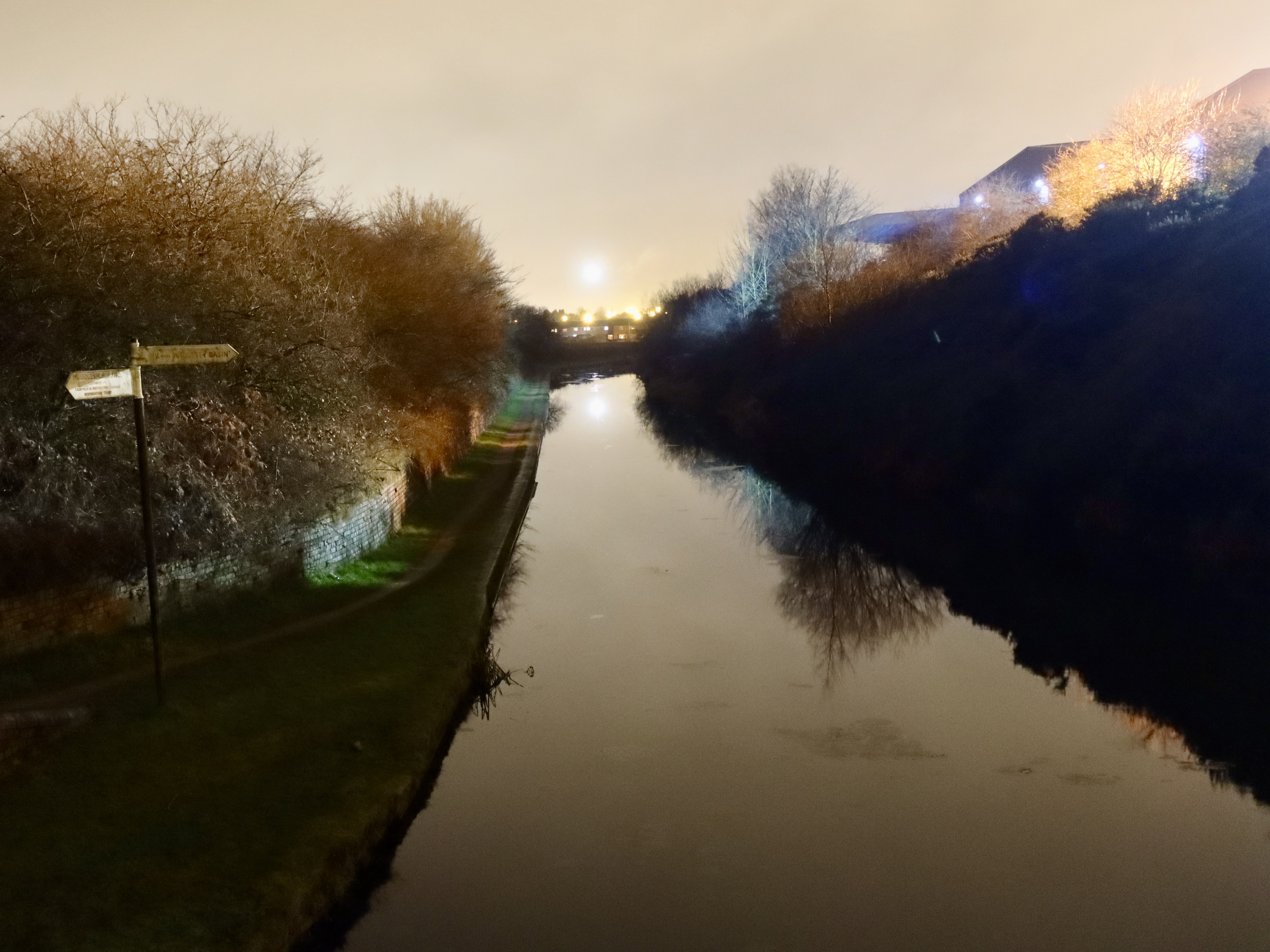 On a cold, clear evening, returning from errands I came along the canal at Silver Street and over the bridge.
