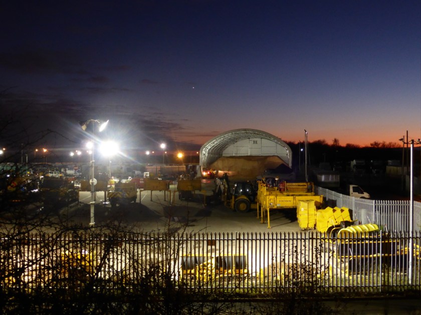 November 23rd – I was passed by a grit lorry on the Chester Road, and winced as the rocksalt tinkled off my bike. It is winter now in all but name, and I’ll get used to it. The cold was bitter, and frost was on the way, so it was good to see Walsall Council teams out on a Saturday treating the roads. As I passed the back of the depot at Apex Road, the yard was busy loading lorries as they came in, and I noted that the salt barn was pretty much full, all set for the winter ahead. A sobering thought.